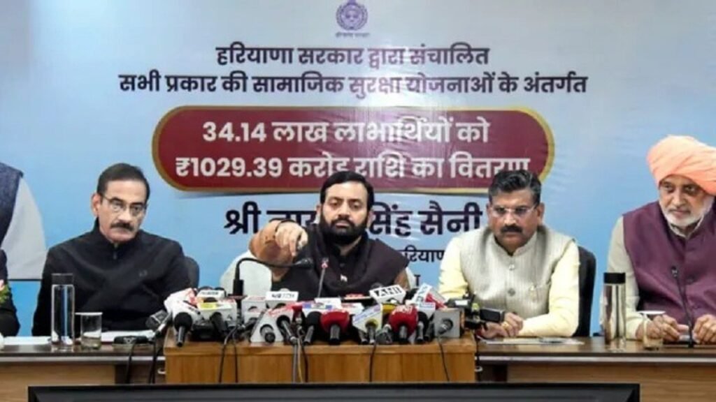 मुख्यमंत्री नायब सिंह सैनी ने बुढ़ापा, विधवा और दिव्यांग समेत प्रत्येक तरह की सामाजिक सुरक्षा पेंशन के अंतर्गत 34.14 लाख लाभार्थियों के खातों में 1098 करोड़ रुपये की राशि जारी की।